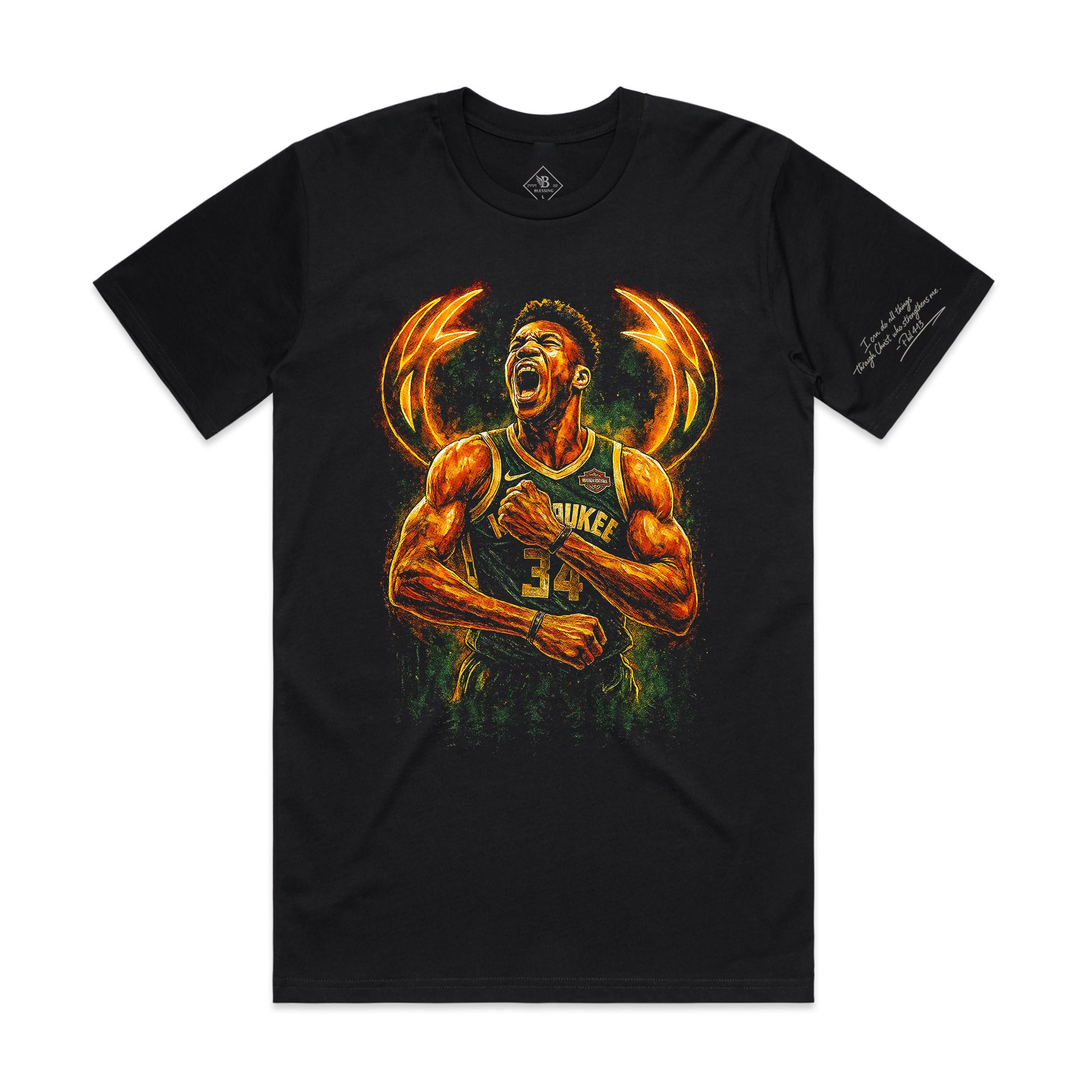 A clean halftone design on a premium black tee, created for the next generation of greatness.